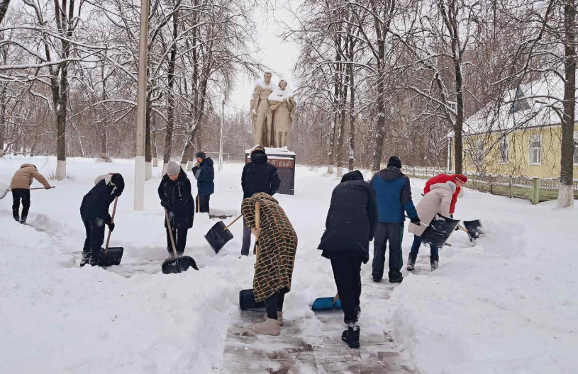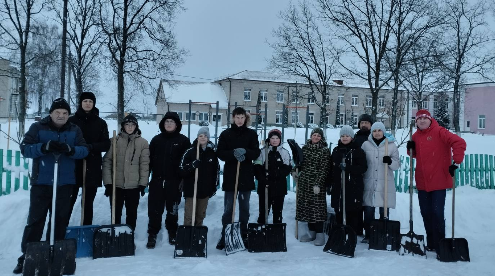 10 января члены ППО и учащиеся государственного учреждения образования "Новодевятковичская средняя школа имени Б.Т.Пищикевича Слонимского района" участвовали  в уборке снега на пришкольной территории,️ возле памятника, погибшим в годы Великой Отечественной войны аг.Новодевятковичи.