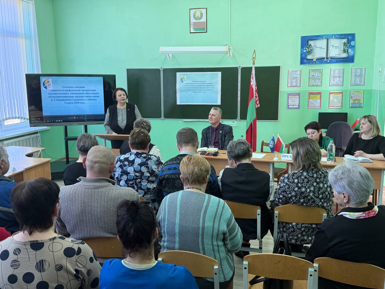 9 марта 2026 года в государственном учреждении образования "Новодевятковичская средняя школа имени Б.Т.Пищикевича Слонимского района" состоялось отчетное профсоюзное собрание по результатам работы профсоюзного комитета за 2025 год, целях и задачах на 2026 год. В работе собрания приняла участие Фидрик Наталья Николаевна, председатель Слонимской районной организации Белорусского профессионального союза работников образования и науки.