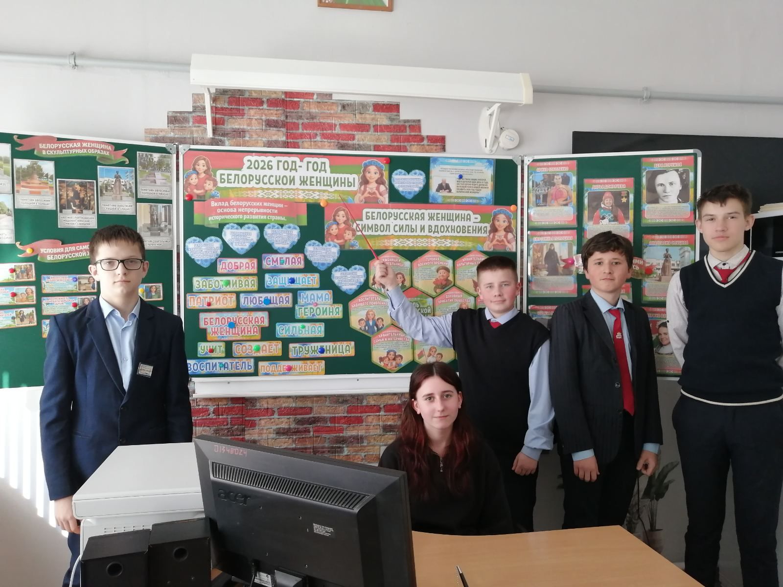 5 марта в 8 классе прошел Единый урок «Белорусская женщина – символ силы и вдохновения». Фокус урока нацелен на формирование ценностного отношения к историческому наследию и роли женщины. Урок успешно сочетает исторический экскурс с современными достижениями, воспитывая уважение, патриотизм и понимание роли семьи, через интерактивные формы, такие как обсуждение, презентации.