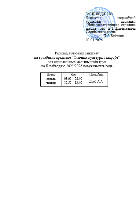 Расписание занятий специальной медицинской группы на II полугодие 2025/2026 учебного года
