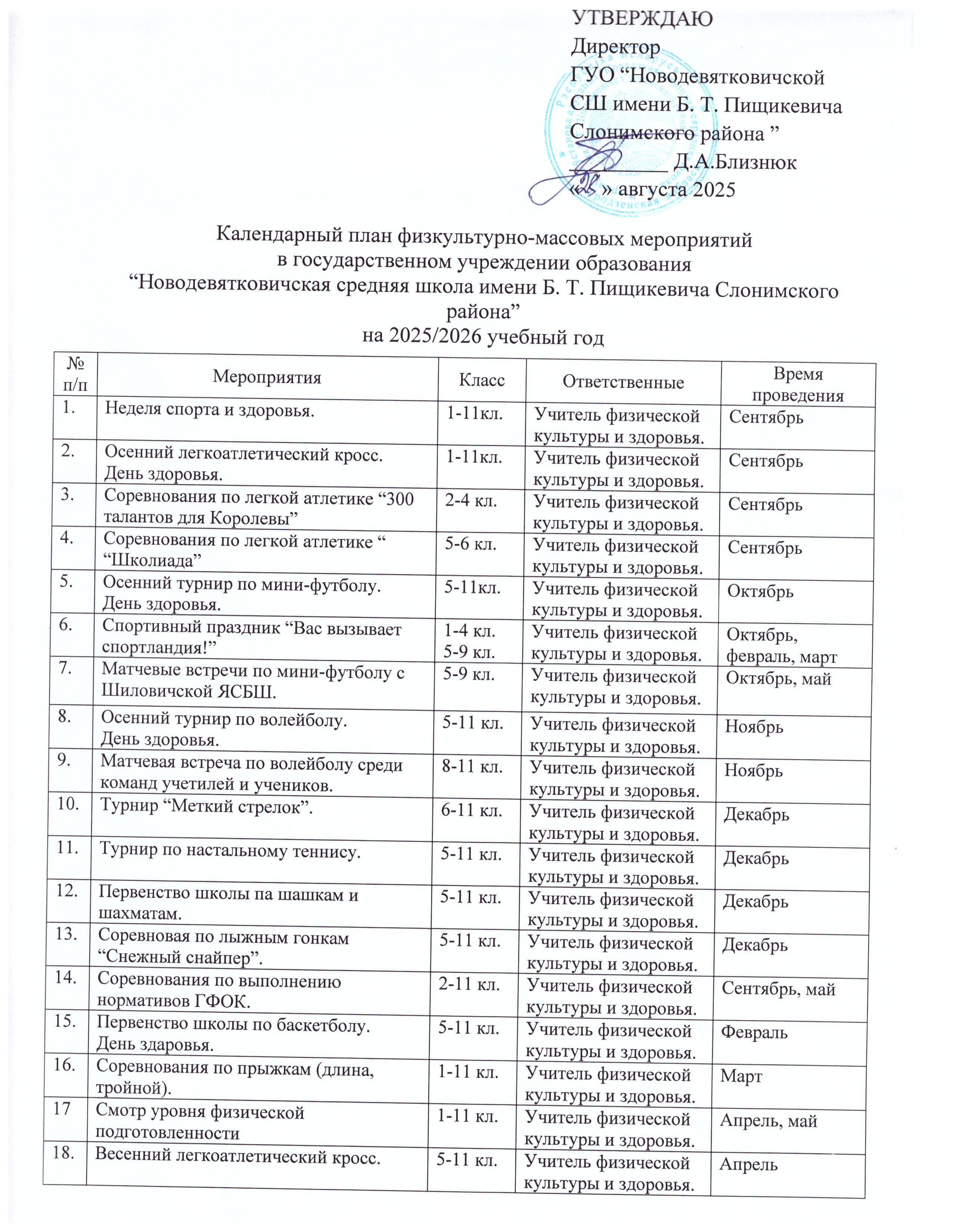План спортивно-массовых мероприятий на 2025/2026 учебный год