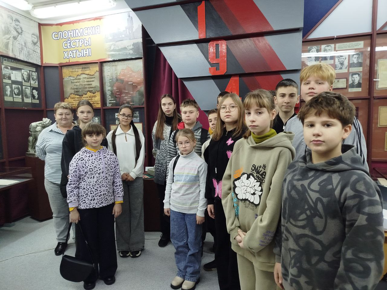 13 декабря 2025 г. учащиеся 5-8 классов посетили учреждение культуры «Слонимский районный краеведческий музей имени И.И. Стабровского» и экспозицию «Геноцид белорусского народа в годы Великой Отечественной войны». В рамках мероприятия был организован просмотр исторических фотографий и видеороликов, которые отражают страдания жителей Беларуси во время войны. Дети ощутили на себе боль и страдания, которые пережили их предки.
