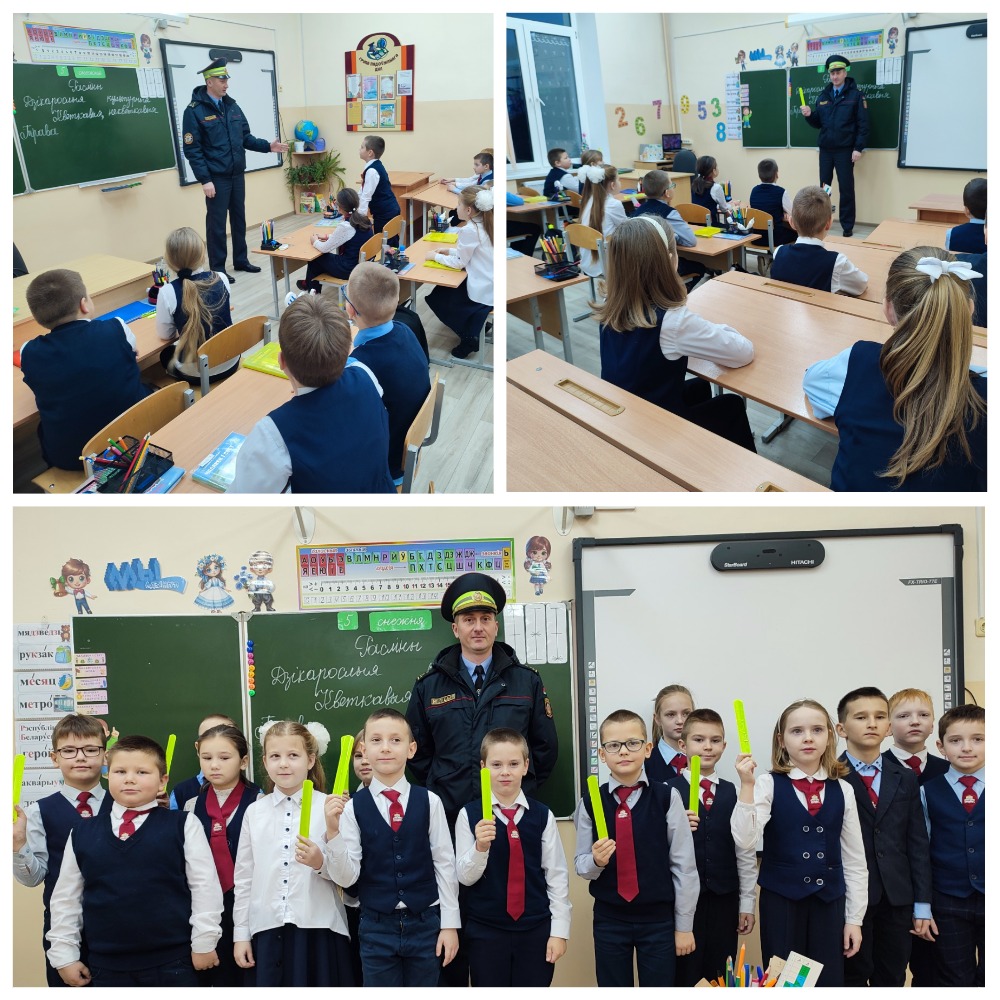 В преддверии зимних каникул прошла профилактическая встреча учащихся 1-4 классов с сотрудниками Слонимского ГАИ. Обращено внимание учащихся на строгое соблюдение правил дорожного движения в качестве пешехода и велосипедиста, обязательном наличии фликеров в темное время суток.
