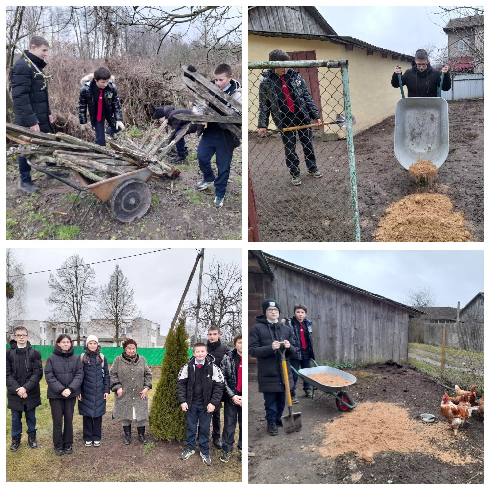 Тимуровский отряд «Спадчына» Новодевятковичской средней школы им. Б.Т.Пищикевича присоединились к благотворительной акции «Эстафета тепла». И с радостью оказали помощь пожилым людям в уборке территории и множестве других дел, которые требуют сил и времени.