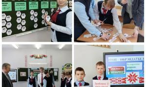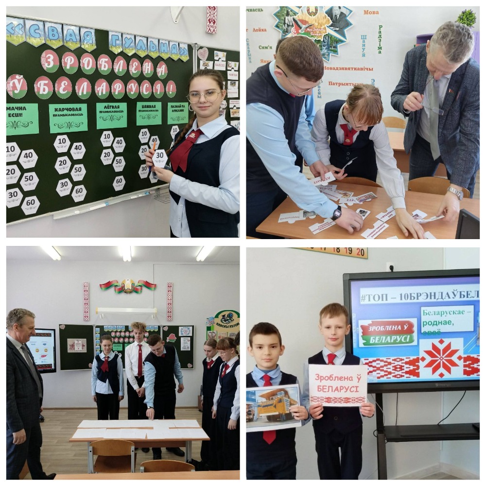 У рамках праекта “Кожную пятніцу - роднае, сваё” для навучэнцаў пачатковых класаў прайшла прэзентацыя-падарожжа “Топ -10 Брэндаў Беларусі”, а старшакласнікі “экзаменаваліся” пад кіраўніцтвам дырэктара-географа Блізнюка Д.А. праз сваю гульню “Зроблена ў Беларусі - значыць, са знакам якасці!”