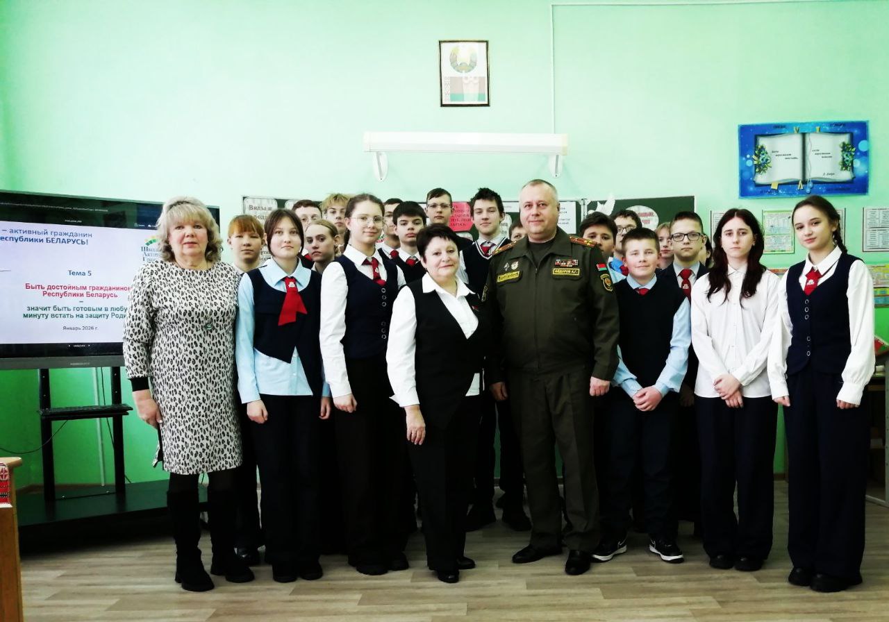 С учащимися VIII- XI классов проведен единый информационный час "Быть достойным гражданином Республики Беларусь - значит быть готовым в любую минуту встать на защиту Родины". ️Инициативная группа  учащихся ознакомила присутствующих с основными тематическими разделами.