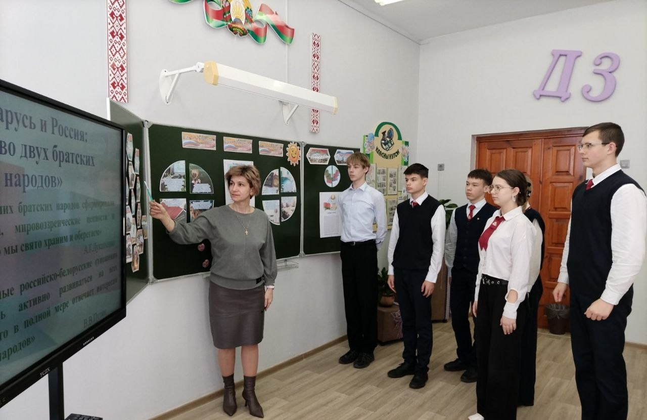 2 апреля 2026 года в Новодевятковичской средней школе имени Б.Т.Пищикевича для учащихся I–XI классов прошёл единый урок, посвящённый Дню единения народов Беларуси и России. В ходе урока учащиеся познакомились с историей создания Союзного государства и обсудили духовные ценности, объединяющие братские народы. Особый интерес у ребят вызвали интерактивные формы работы: виртуальная экскурсия по достопримечательностям двух стран, блиц-опрос о важнейших исторических датах и знакомство с молодёжными проектами Союзного государства.